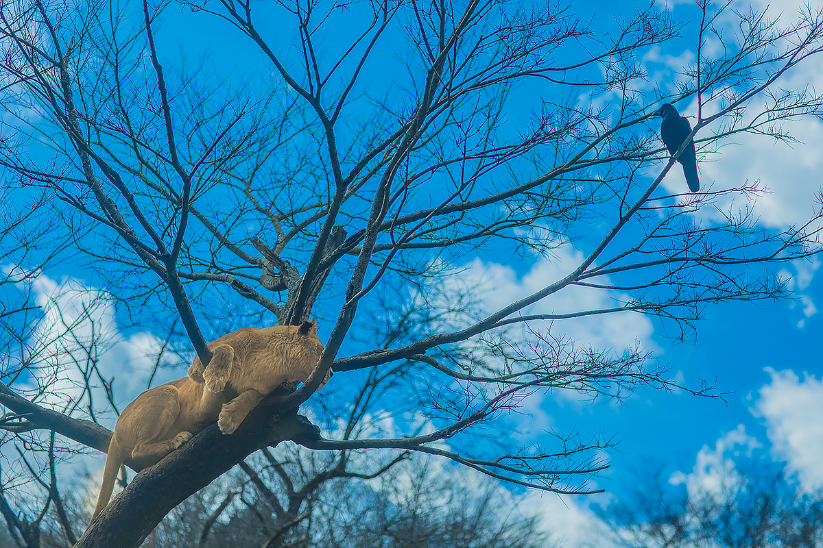 ライオンはネコ科だと思い出させるワンシーン。
