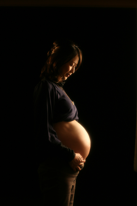 お腹の出ないロングドレスタイプなら、マタニティママの柔らかさ、