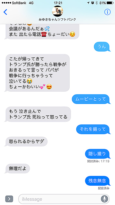 トランプが当選したから戦争にパパが行っちゃう!とのことでした。